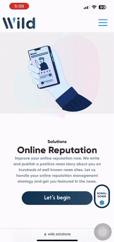 The Wild website was created for a Digital Marketing Agency showcasing different work from the company and services provided by them.