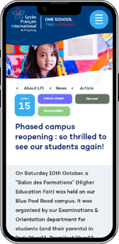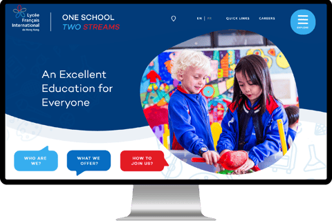 The website was created for a French international school in Hong Kong. It aims to provide school information and allow users to get to know the daily life at school.